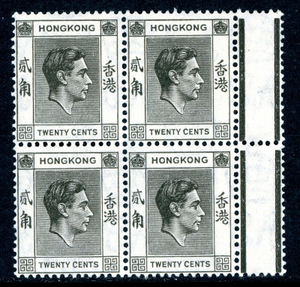 China 1946 Hong Kong 20¢ Black KGVI Scott 147 MNH O213
