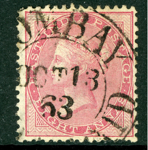 British 1863 India QV 8a Rose Unwatermarked White Paper Scott #18 VFU U249