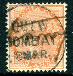 British 1865 India QV 2a Deep Orange Wmk Scott #23 VFU U255