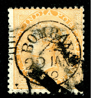 British 1865 India QV 2a Orange Wmk Scott #23 VFU U263