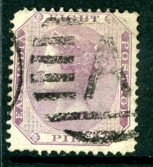 British 1865 India QV 8p Lilac Wmk Scott #21 VFU U226