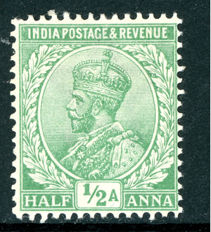 British India 1912 KGV ½ Anna Green SG #155 Mint W68