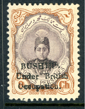 British India 1915 Bushire Under British Occ 9ch Yel Brn & Viol Sc#N6 Mint Q944