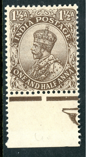 British India 1919 KGV 1½a Chocolate Scott #101 MNH N381