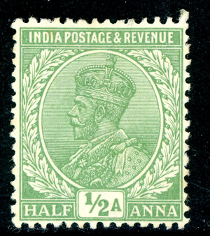 British India 1926 KGV ½ Anna Green SG #110 Mint W110