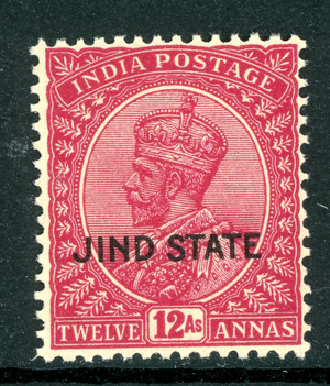 British India 1927 Jind KGV 12a Claret Sc #119 MNH N555