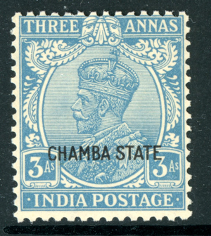 British India 1927 KGV Chamba 3a Ultramarine Scott #54 MNH K407