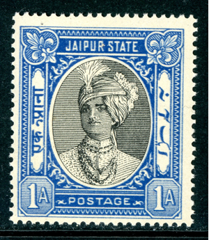 British India 1932 Jaipur State 1a Blue & Black Scott #37A MNH V160