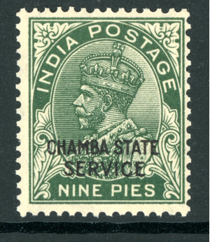 British India 1932 KGV Chamba Official 9Ps Dark Green Scott #O38 MNH K404