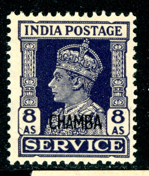British India 1941 KGVI Chamba 8a Blue Violet Sc #O65 MNH N293