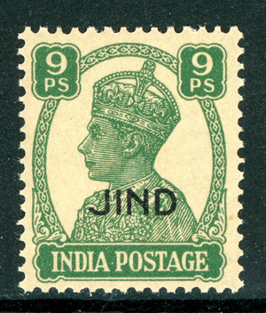 British India 1942 Jind KGVI 9p Light Green Sc #167 MNH N566