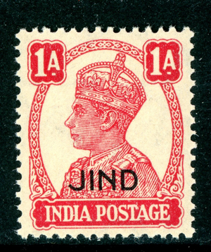 British India 1943 Jind KGVI 1a Carmine Rose Sc #168 MNH N565