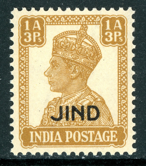British India 1943 Jind KGVI 1a3p Bister Sc #169 MNH N563