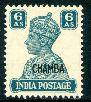 British India 1943 KGVI Chamba 6a Peacock Blue Sc #98 MNH N277