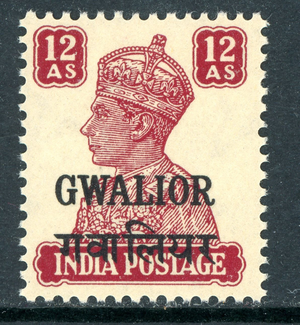 British India 1943 KGVI Gwalior 12a Lake SG #128 MNH N680