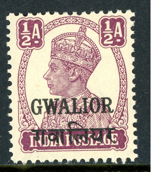 British India 1943 KGVI Gwalior ½a Purple SG #119 MNH N334