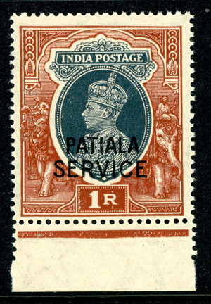 British India 1943 Patiala 1R Brown & Slate SG #O74 MNH N429