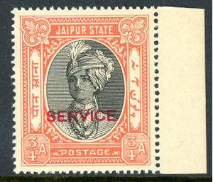 British India 1944 Jaipur State ¾a Brown Red & Black SG #O24 MNH N14