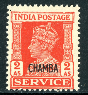 British India 1944 KGVI Chamba 2a Scarlet Sc #O62 MNH N296