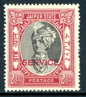 British India 1946 Jaipur State 2½a Carmine & Black Scott #O26 MNH V153