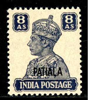British India 1946 KGV Patiala State 8a Blue Violet Scott #113 MNH K480