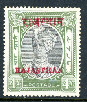 British India 1950 Rajasthan Official 4a Grey Green SG #O22 Mint N123