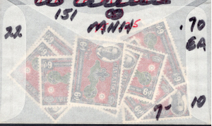 Jamaica Scott 151. Group of 10. Mint. Never hinged. 22