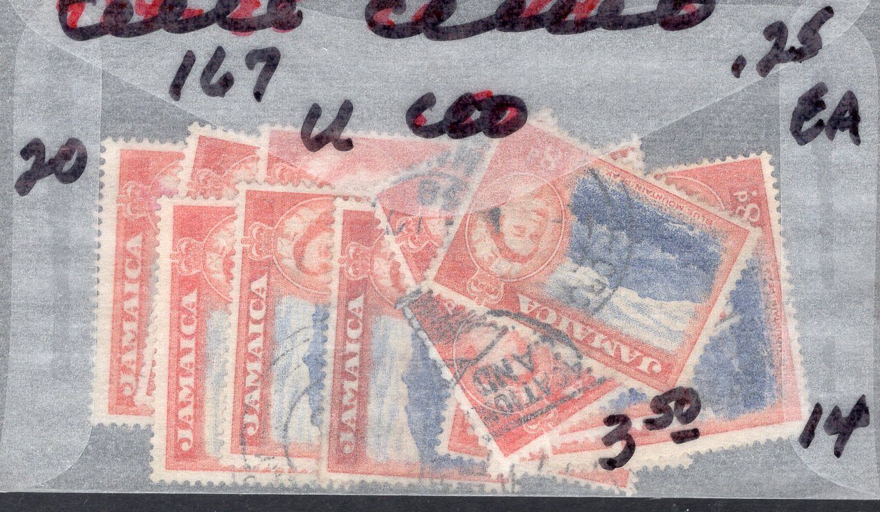 Jamaica Scott 167. Group of 14. Used. 20