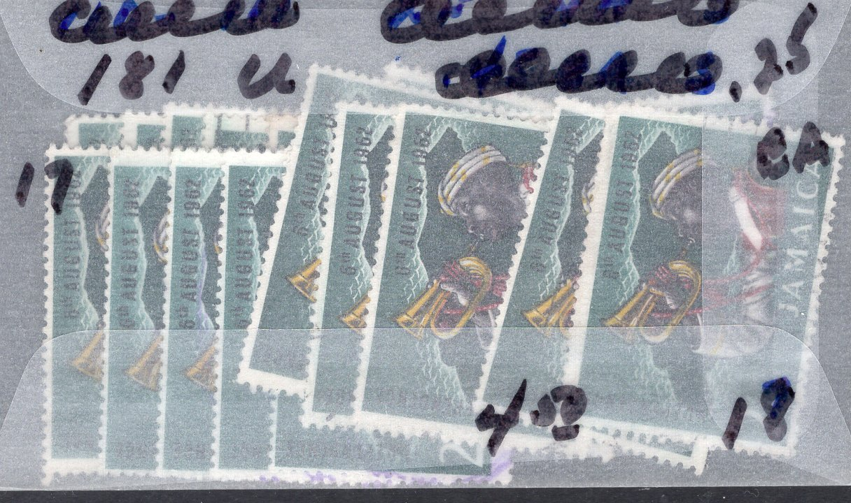 Jamaica Scott 181. Group of 18. Used. 17