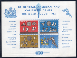 Jamaica Scott 197-200. Souvenir sheet. Mint. Never hinged. Imperforate. Corner thin at bottom. 6
