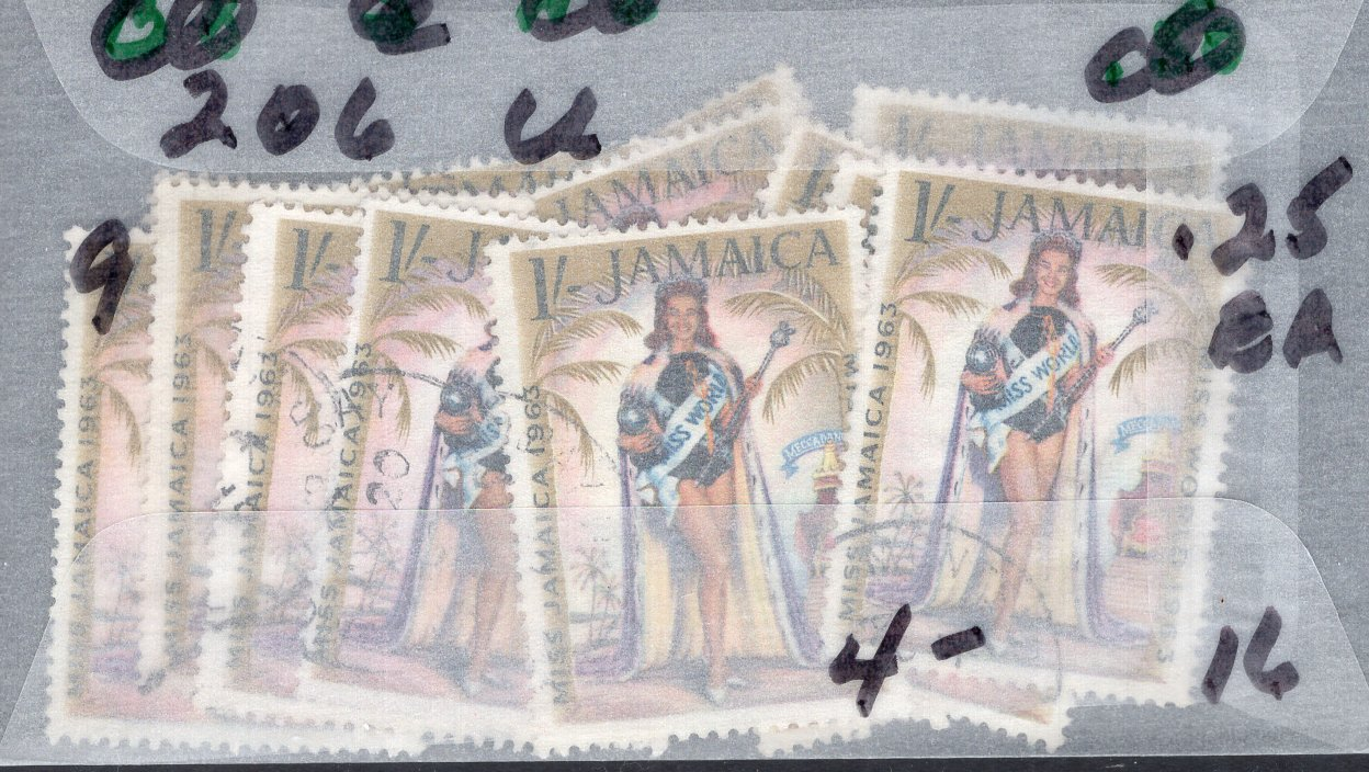 Jamaica Scott 206. Group of 16. Used. 9