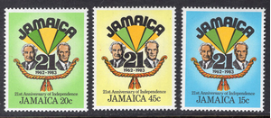 Jamaica Scott 560-562. Complete set. Mint. Never hinged.