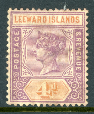 Leeward Islands 1890 British QV 4p Lilac & Orange Scott #4 VFU R892 ⭐⭐⭐⭐⭐