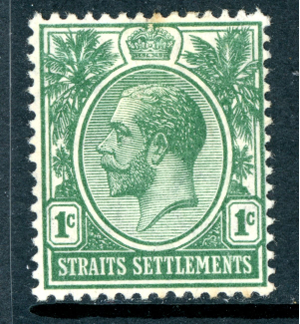 British Colonies 1912 KEVII Straits Settlements 1¢ Green Sc#149 Mint X472