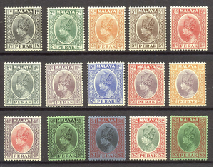 Scott #69-83: 1935 Sultan Iskandar Set Centering & Condition: Mint. Fresh. Fine-Very Fine set. Reverse (Gum Side): Original gum. Hinged. Faults / Imperfections: None The item pictured is the actual item you are purchasing, unless otherwise noted. I also offer an interest-free layaway plan. Ask me about it!" All items will be mailed a day or two after payment is received. --------------------------------------------------------------------------------