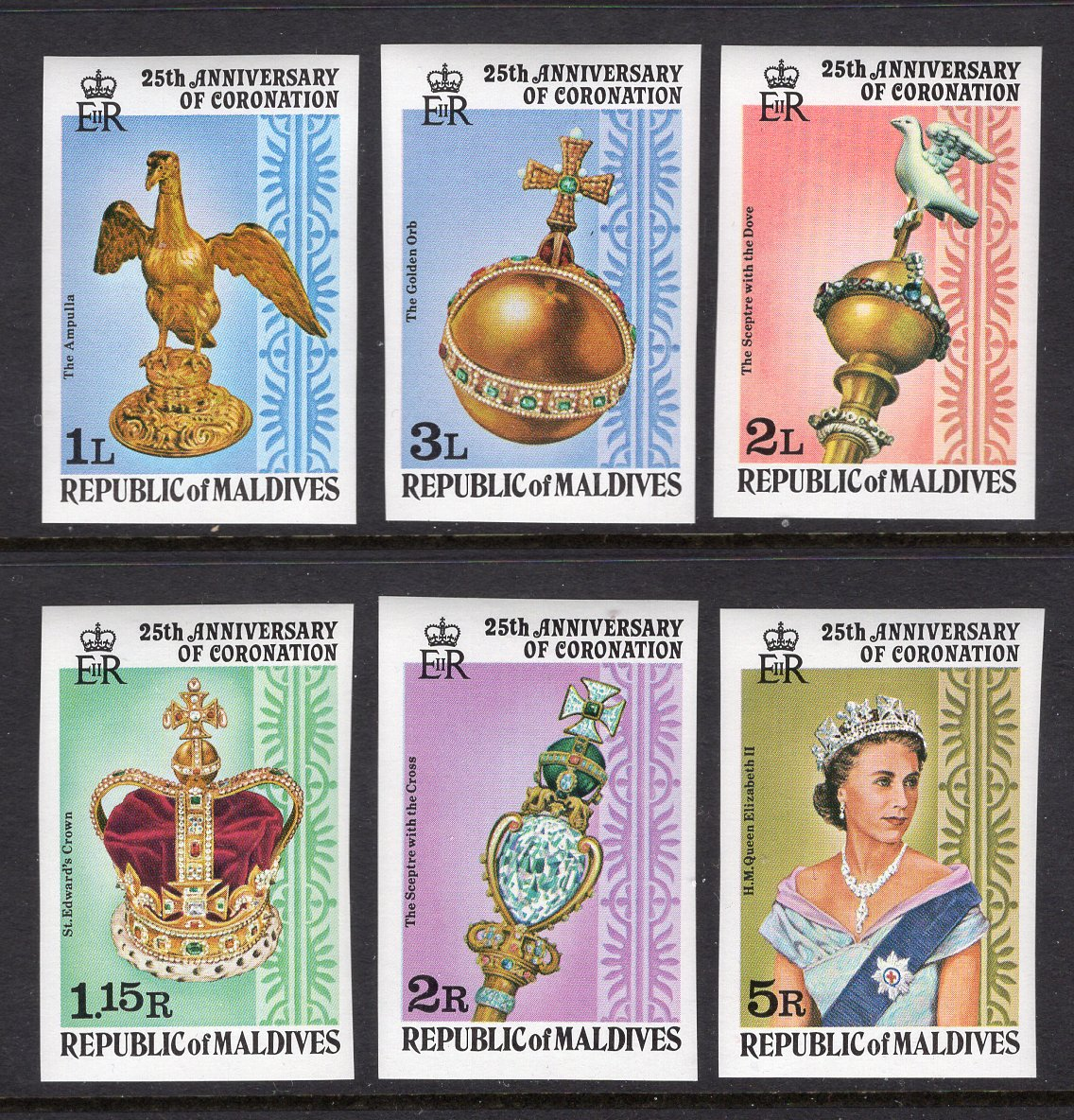 Maldive Islands Scott 743-748. Complete set. Mint. Never hinged. Imperforate.