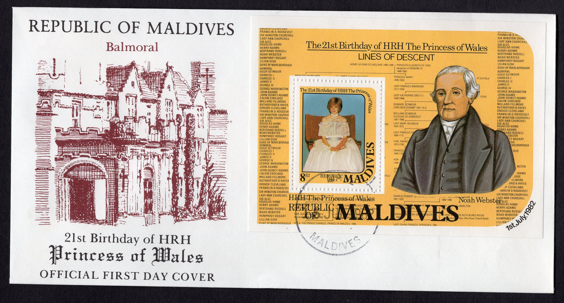 Maldive Islands Scott 955. Souvenir sheet. First day of issue cover.