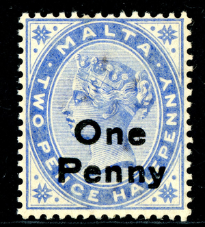 British 1902 Malta 1p/2p Dull Blue Scott #20 MNH O132