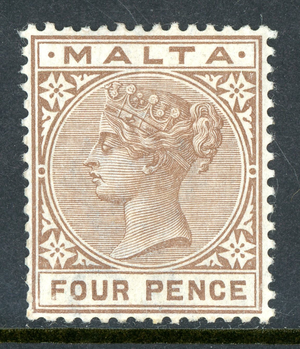 Malta 1885 British QV 4p Brown Scott #12 MNH U418 ⭐⭐⭐⭐⭐⭐