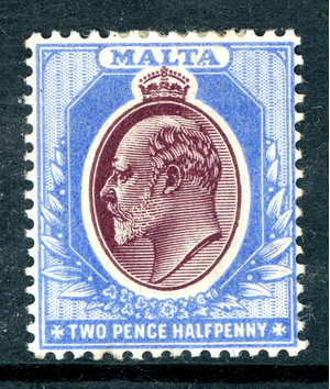 Malta 1903 British KGV 2½p Ultra & Brown Violet CCA Scott #24 Mint U303 ⭐⭐⭐⭐⭐⭐
