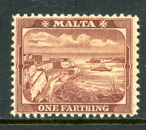 Malta 1905 British KGV 1 Farthing Brown Red Scott #28v =SG 45w= Mint U490 ⭐⭐⭐⭐⭐