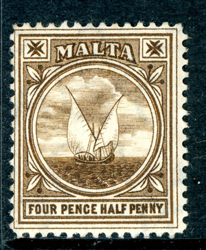 Malta 1905 British KGV 4½p Black Brown MCCA Scott #42 Mint U315 ⭐⭐⭐⭐⭐