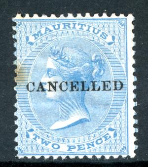 British 1863 QV Mauritius 2p Pale Blue "Cancelled" SG #59 Mint X570