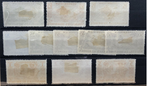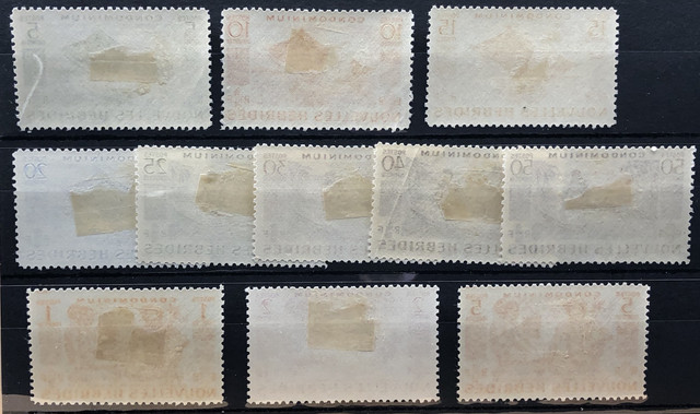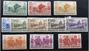 Designs: Port Vila and Iririki Islet, Tropical river and spear fisherman, Woman drinking from coconut. Insribed "Franco-British Alliance 4th March 1947." Complete set of 11, 1957.