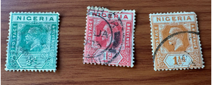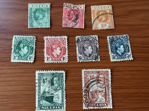 Nigeria 1925, 1936, 1938. Set of 9 stamps Kings George V and VI. Used/Hinged