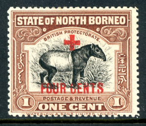GANDALF - British 1918 North Borneo 1¢ Brown Red Cross Scott #B31 MNH J819