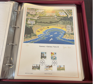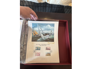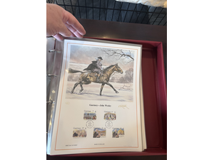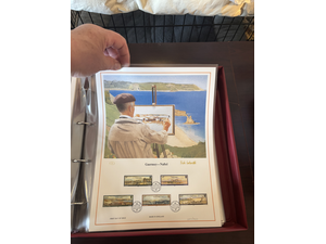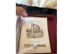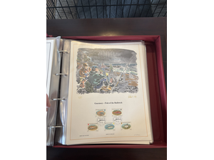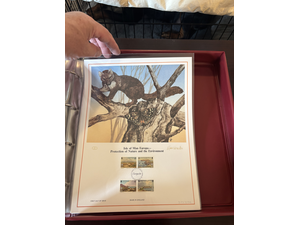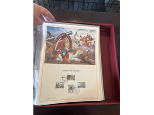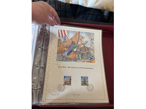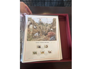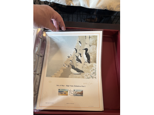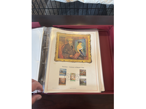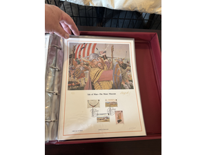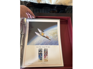 First Day Lithographs - sold separately for $2.50 plus postage OR - the entire collection of lithographs to include binder for $150 postage included. These are First Day stamps with a Norman Rockwell style photo and on the reverse side, a short story of the event.