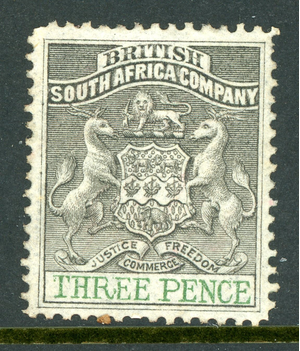 Rhodesia 1892 British QV 3p Grey Black & Green SG #21 Mint S476