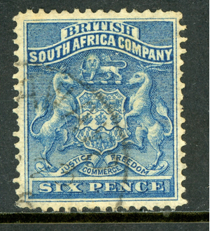Rhodesia 1892 British QV 6p Deep Blue SG #3 VFU S558