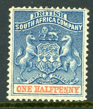 Rhodesia 1893 British QV ½p Deep Blue & Vermillion SG #19 Mint S475